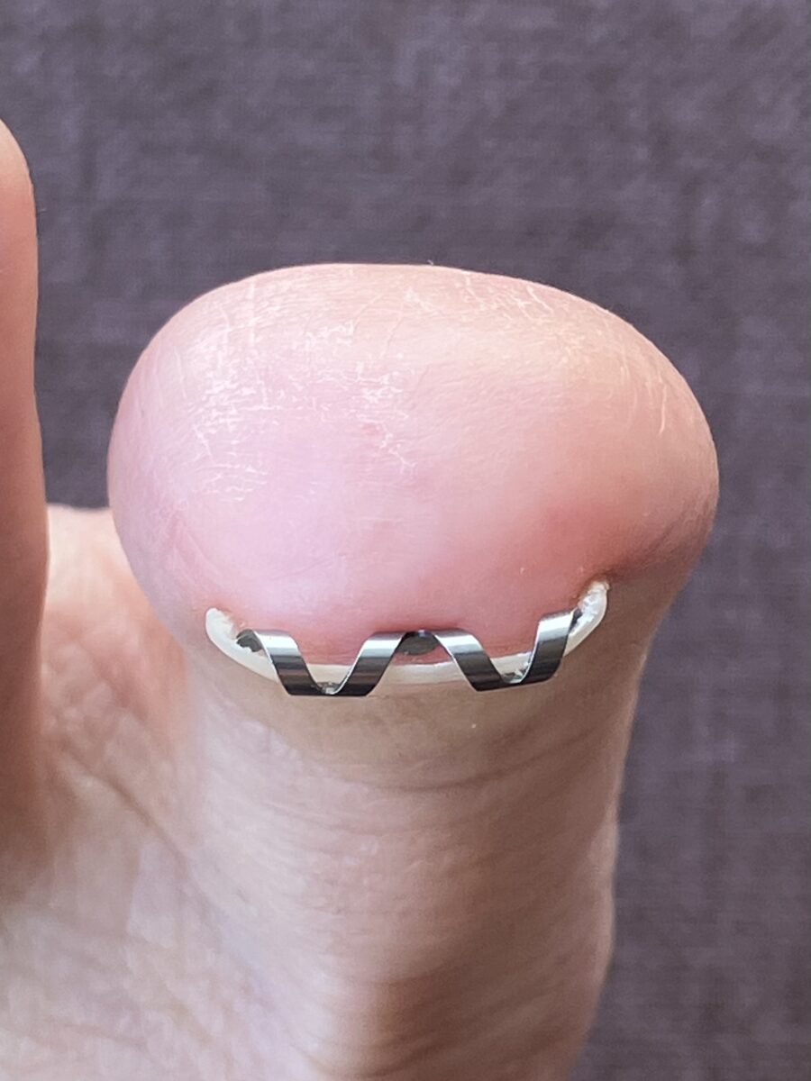 伸縮性のあるテープによって、皮膚に食い込んでいる爪を引き上げて、痛みを減らすことが可能です。