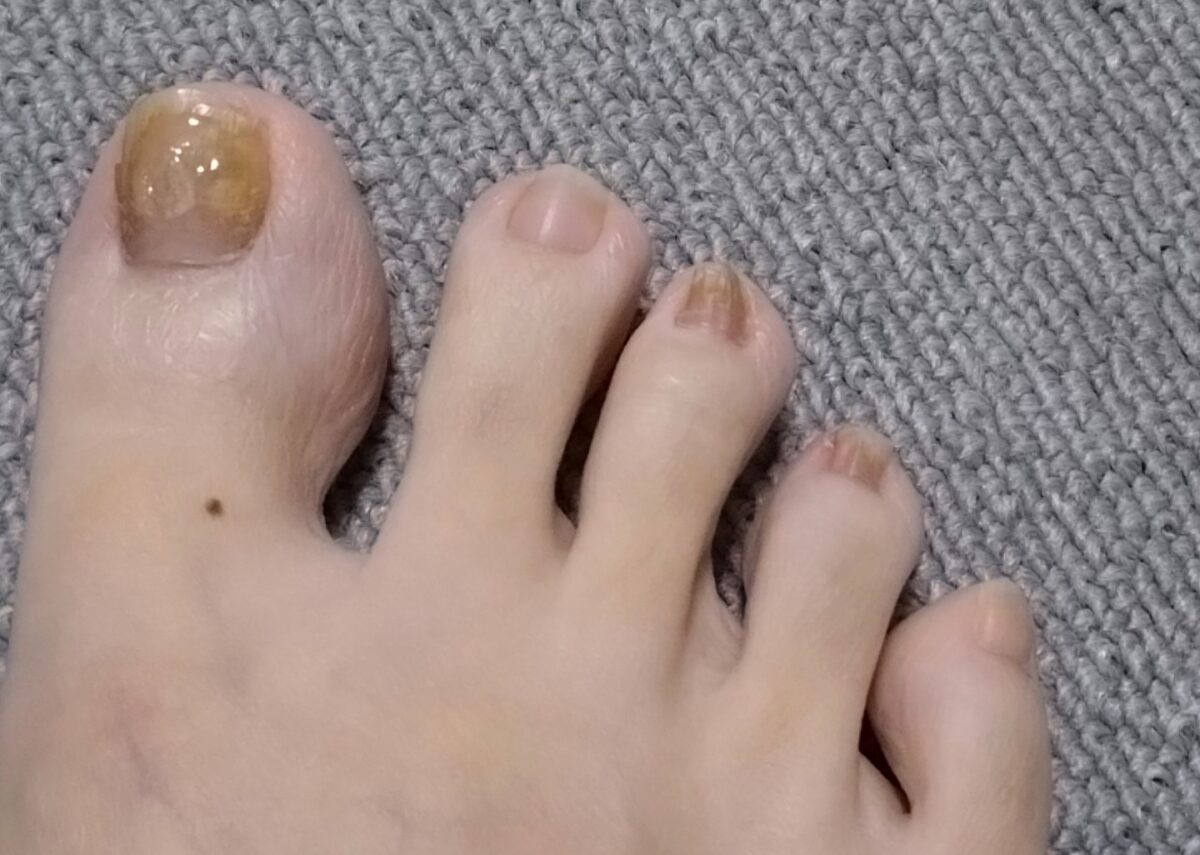 手指の爪に異常が見られ始めた今年4月頃、両足の親指が巻き爪になりました。