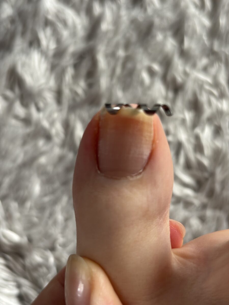 下から生えてきた爪かそのまま刺さっているため持ち上げる爪も短く自分でコットンなどを挟むには難しいです。